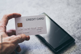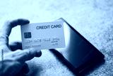 Hand holding credit card and smartphone Online shopping payment