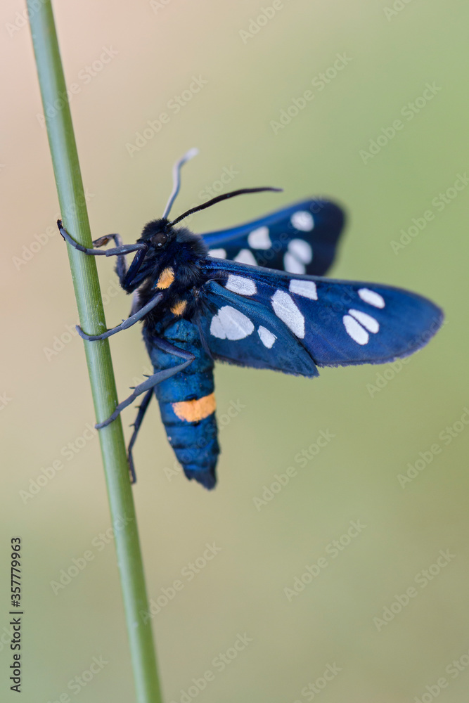 Nine-spotted moth - Amata phegea, beautiful colored moth from European meadows and woodlands, Pag island, Croatia.