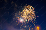 Brightly colorful fireworks 4th July fireworks. Fireworks display on dark sky background.