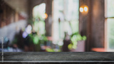 Empty black marble stone table top and blurred coffee shop and restaurant interior background - can used for display or montage your products.