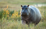 One adult hippo out of water in Khwai Okavango Delta Botswana
