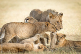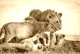 Lion pride greeting each other and bonding showing affection in Masai Mara Kenya