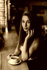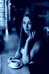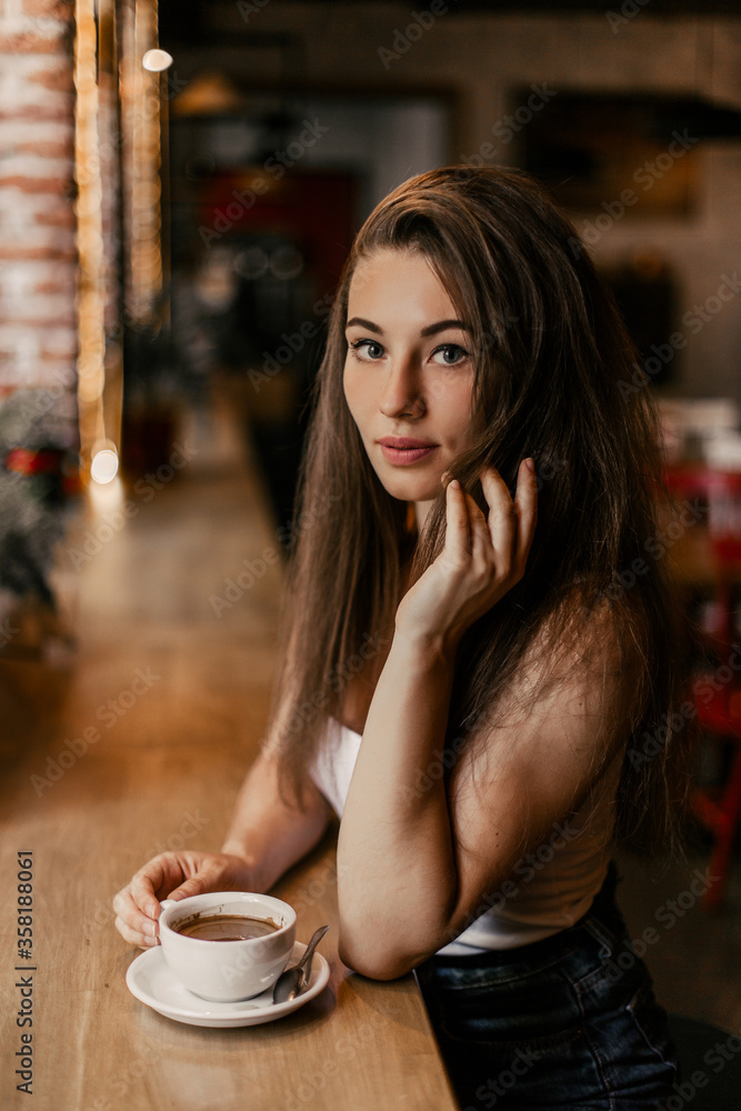 Beautiful woman drinking coffee sitting in a cafe.