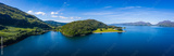 aerial image of loch linnhe on the west coast of the argyll and lochaber region of scotland near kentallen and duror showing calm blue waters and clear skies with green forest coast line