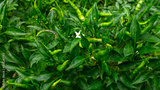 Rows of green peppers in the garden. It is an improved variety of pepper in Bangladesh.