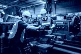 Engineer or mechanical worker with yellow safety helmet checking on production in a factory. Industrial, Mechanic, Engineering Concept.