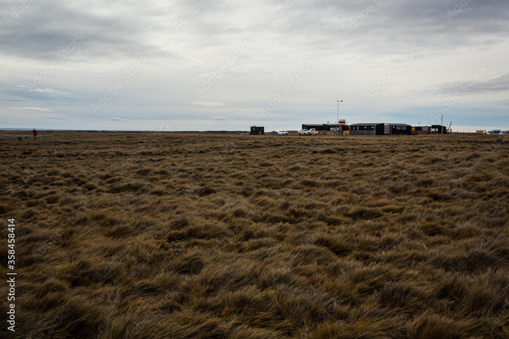 Steppe in Tierra de Fuego, chilean Patagonia, Chile. Last land of America, end of the world. Trekking and sustainable destination in South America.