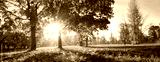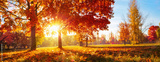 Autumn Landscape. Fall Scene. Trees and Leaves in Sunlight Rays