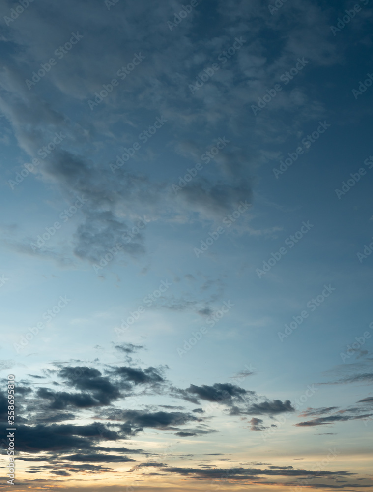 Dark cloud and blue sky in magic hour at sunset, The horizon began to turn orange with purple and pink cloud at night, Dramatic cloudscape area