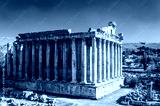 It's Temple of Bacchus in Baalbek, a town in the Beqaa Valley of Lebanon situated east of the Litani River. Known as Heliopolis during the period of Roman rule