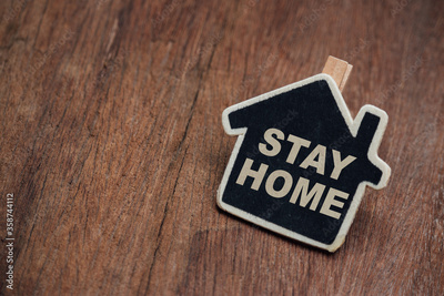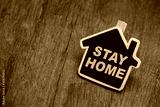 Stay home, Typography campaign poster with text for your own quarantine time. family Motivational quotes to stay safe at home from disease outbreaks. text with the house wooden craft.