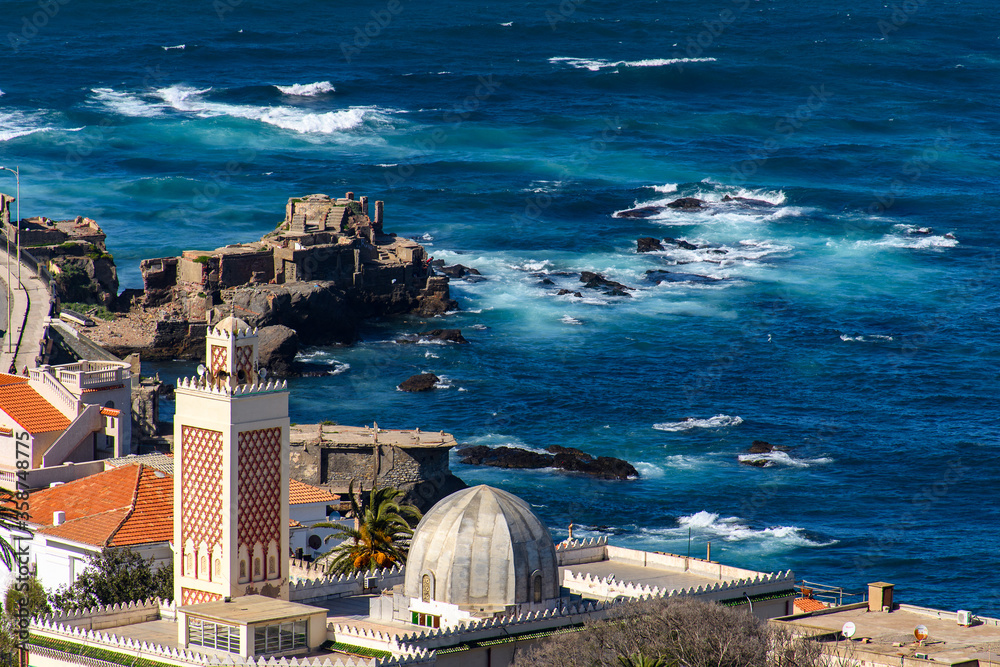 Nature and architecture of Mediterranean coast of Algiers, the capital and largest city of Algeria