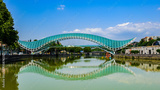 It's Bridge of Peace in Tbilisi, Geaorgia, bow-shaped pedestrian bridge over the Kura River in Tbilisi, capital of Georgia. One of the most important sites of Tbilisi