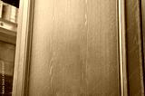 Empty wooden surface at the entrance of shop for logo mockup. Branding, logo design promotion