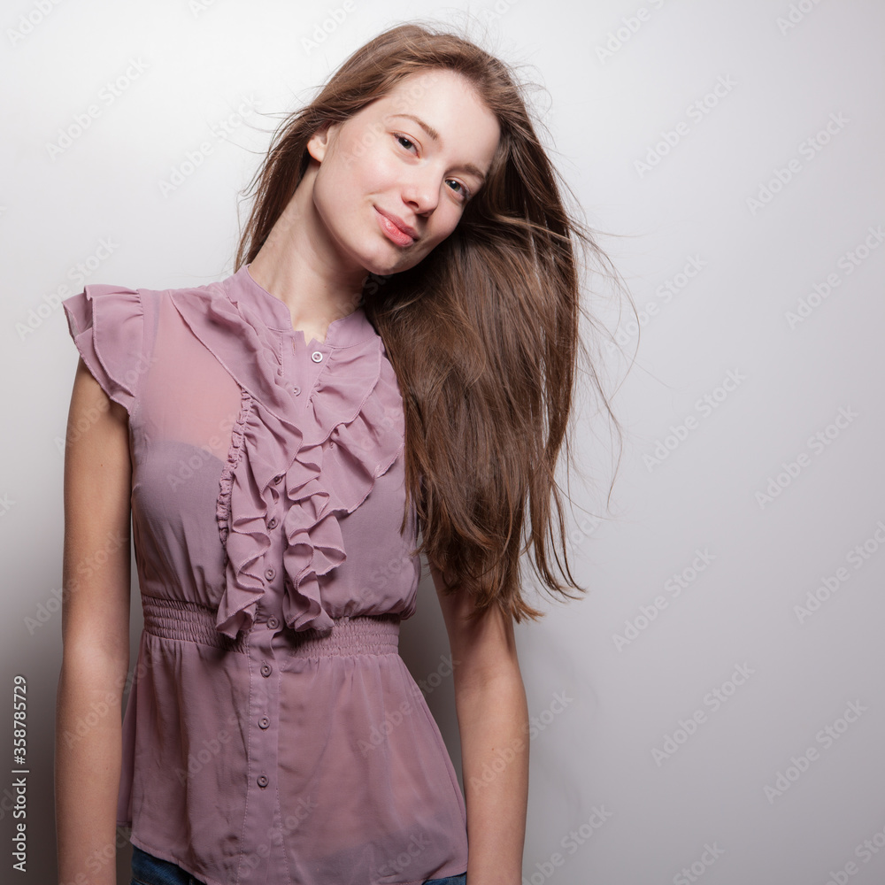 Young beautiful stylish girl posing in studio.
