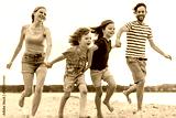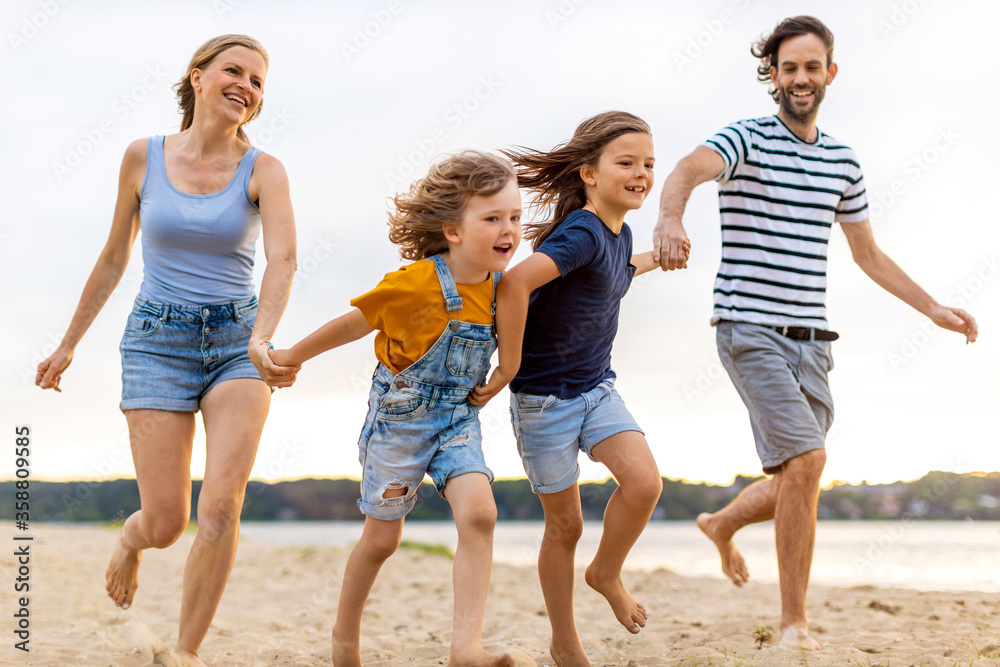 Young family enjoying time at the beach