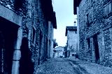 Medieval architecture of Perouges, France, a walled town, a popular touristic attraction.