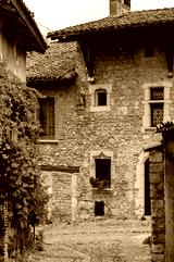 Medieval architecture of Perouges, France, a walled town, a popular touristic attraction.