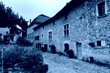 Street of Perouges, France, a medieval walled town, a popular touristic attraction.