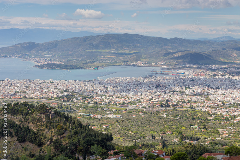 Volos city view from Pelion mountain, Thessaly, Greece.