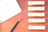 Wooden cube for business icon and wood cube pattern background, business idea concept