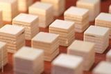 Wooden cube block with new normal word and business icon, business with social distancing personal hygiene icon, Business concept growth success process
