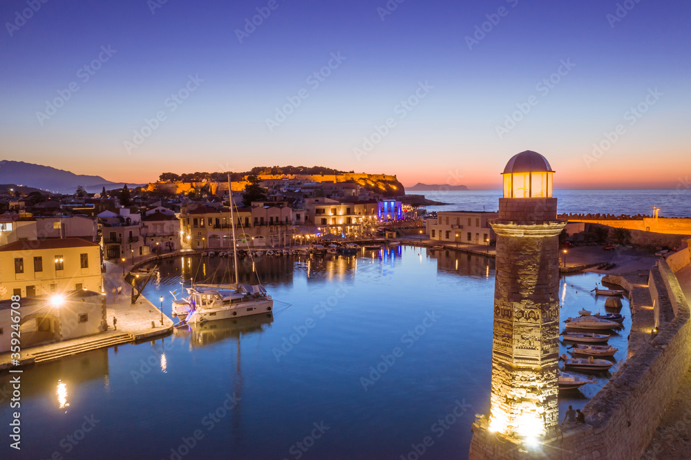 Rethymno city at Crete island in Greece. The old venetian harbor.