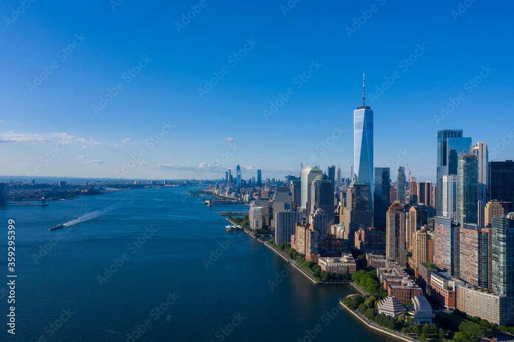 Aerial view of New York Manhattan with skyline and lower downtown.