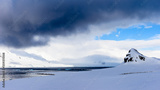Cloudy weather over the Half Moon Island, an Antarctic island, the South Shetland Islands of the Antarctic Peninsula region.