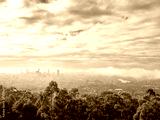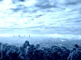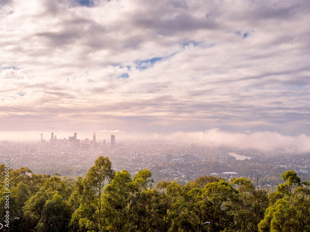 Brisbane City Skyline on a Misty Day with Low Cloud