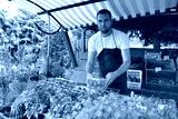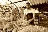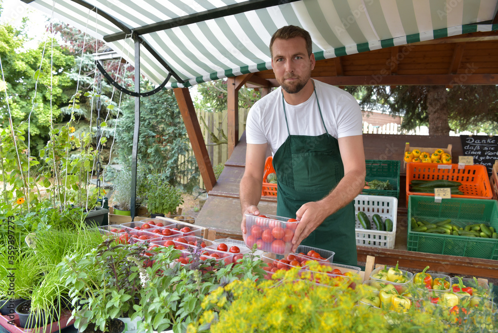 farmer sells fruit and vegetables from his own cultivation fresh from the field and from the greenhouse