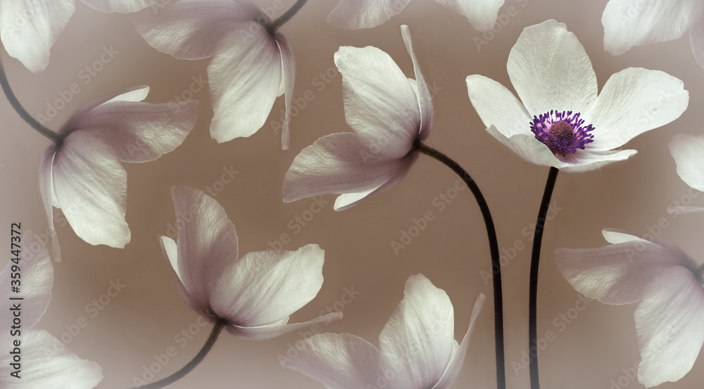 White beautiful primrose. Flowers on a green stem. Studio shot. Nature.