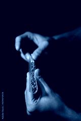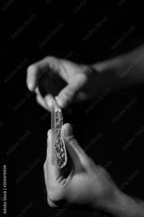 Hands in the foreground of a young boy rolling a joint of marijuana and tobacco on a black background