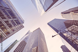 Manhattan skyscrapers at sunset, color toning applied, New York City, USA.