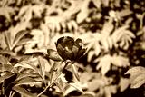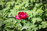 Luxurious bud of burgundy peony. Beautiful garden flowers. Close-up.