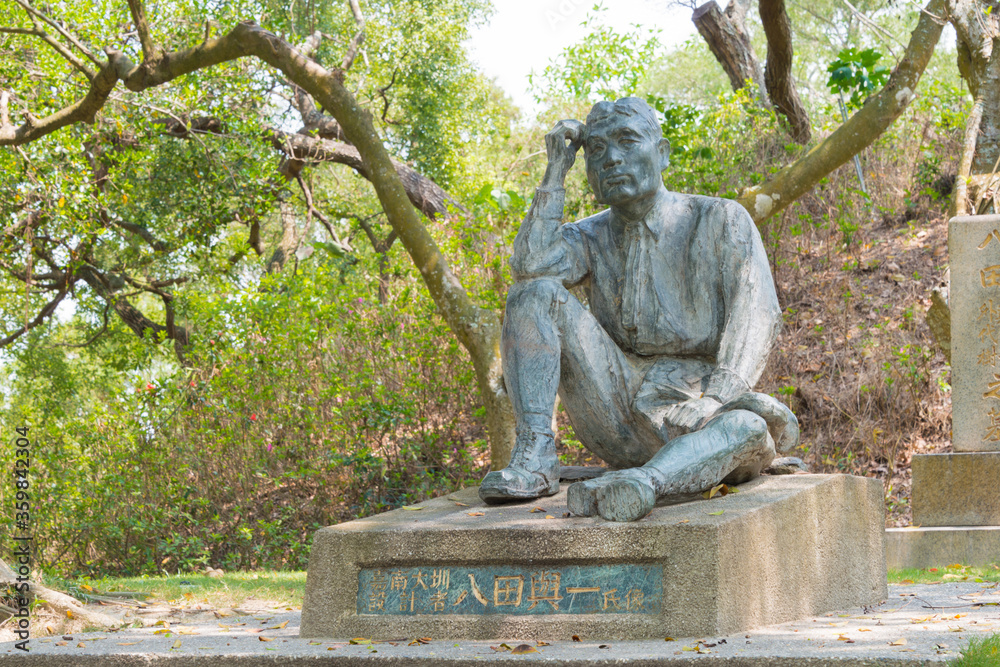 Hatta Bronze statue at Wusanto Reservoir scenic area in Guantian District, Tainan, Taiwan. Yoichi Hatta (1886-1942) was a Japanese engineer, He designed Wusanto Dam.
