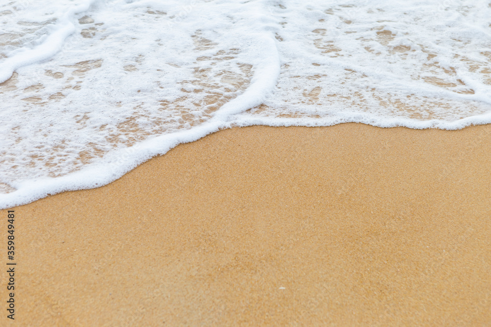 White wave on brown sand beach, nature and environmental concept background, clean beach, outdoor day light