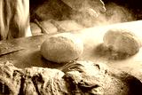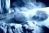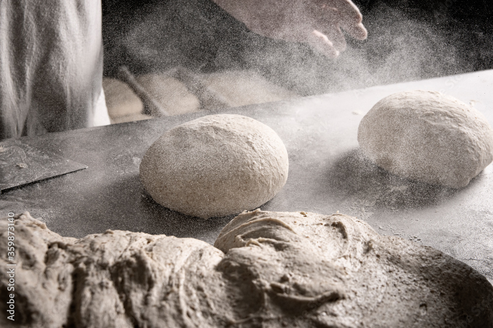 Baker working the bread dough.