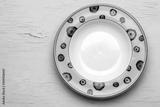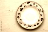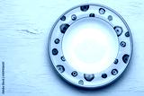 Empty plate. Bright multi-colored plate. Isolated on a blue background. View from above