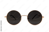 Street style oval sunglasses with thin golden metal frame, clear brown lens, isolated on white background, front view.