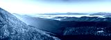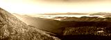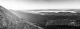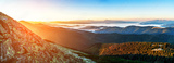 Beautiful dawn in the mountain range. Mountains shrouded in mist in a scenic landscape view. Location Carpathian mountains, Europe. Travel background