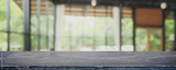 Empty black marble stone table top and blurred coffee shop, cafe and restaurant interior background - can used for display or montage your products.