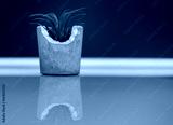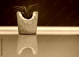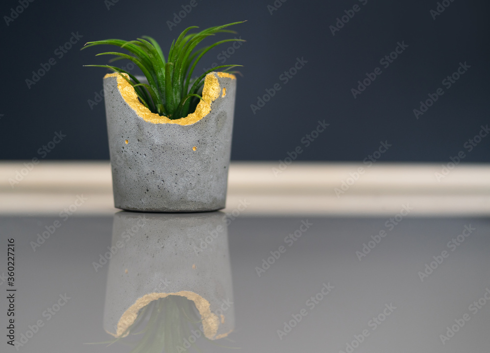 plant of tillandsia put in diy concrete pot and paint with gold color on edge put on floor with reflection Air purifier plant concept
