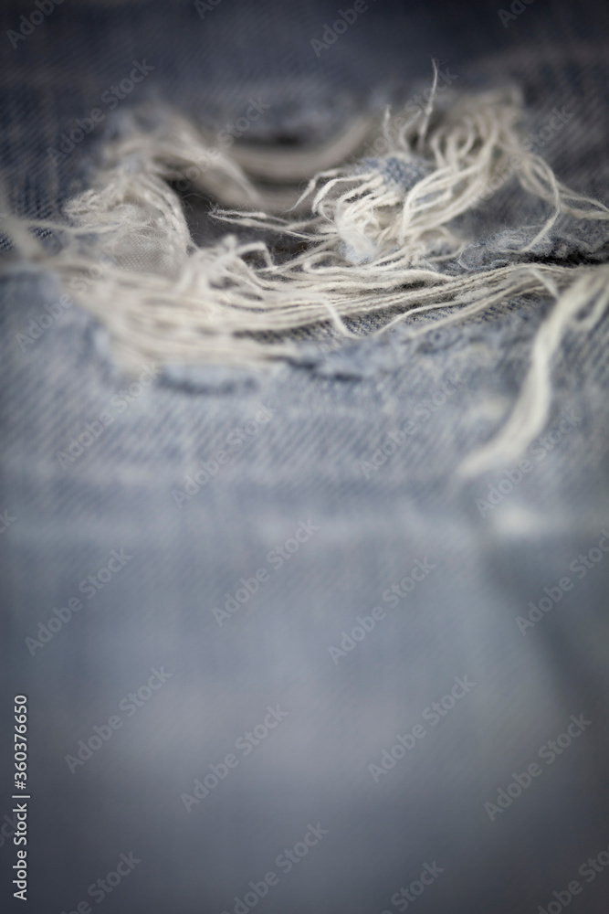 Close up detail of old torn denim jean, shallow depth of field