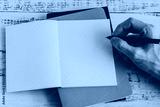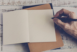 Blank notebook or plain diary or journal for hands writing text