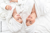 Top view happy mom and daughter. Mother with child doing beauty treatment together. Beauty salon concept, wellness spa