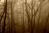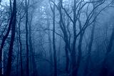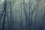 scary misty forest in the morning