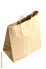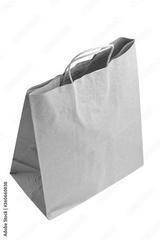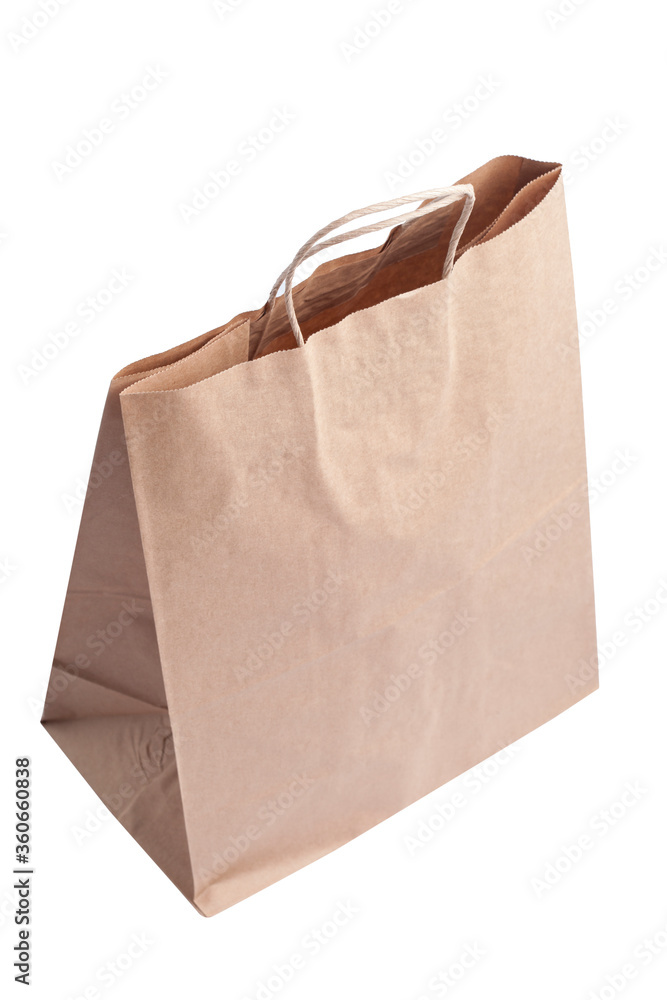 Paper bag with pen on a white background. Recycled paper shopping bags