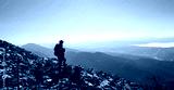 Happy hiker winning reaching life goal, success, freedom and happiness, achievement in mountains. Lifestyle wanderlust adventure. Carpathian mountains, Ukraine, Europe