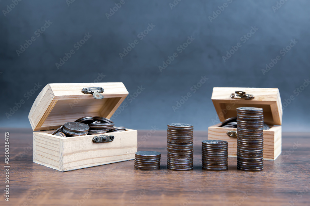 Many coins are stacked in a graph shape concept of money saving ideas and financial planning insurance.